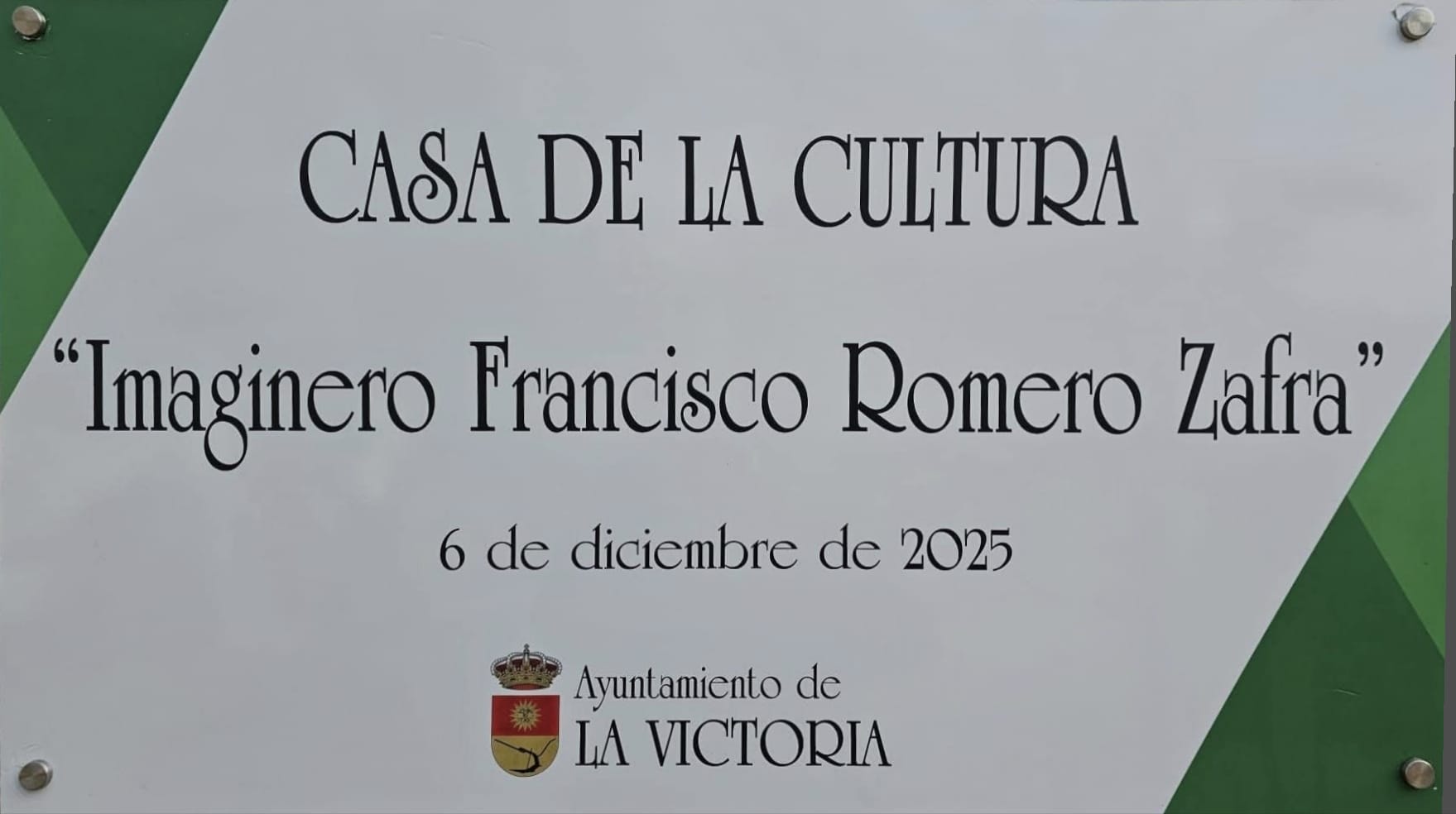 Este sábado por la mañana, La Victoria, pueblo natal de Francisco Romero Zafra, inauguró la Casa de la Cultura que lleva su nombre, tras el comunicado difundido por el Ayuntamiento en el mes de septiembre que se informó que habían aprobado en pleno el nombramiento de la Casa de la Cultura «Imaginero Francisco Romero Zafra», referente de la imaginería cofrade y artista contemporáneo.